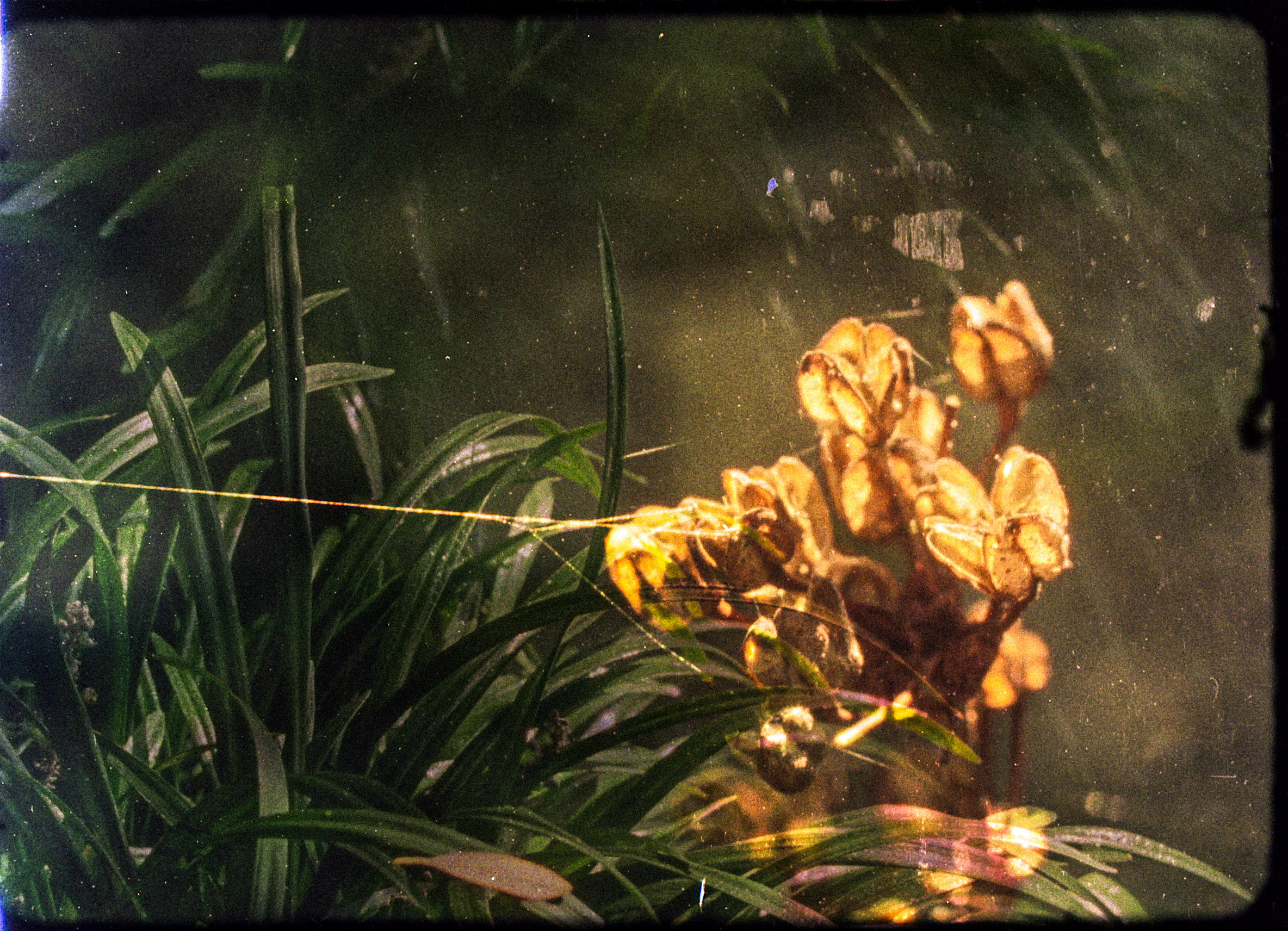 The 16 mm material was hand-processed on site in a hybrid development process using plants, fungi, and water collected at the locations visited. The films become carriers of the landscape itself, living archives of earth, movement, and memory.